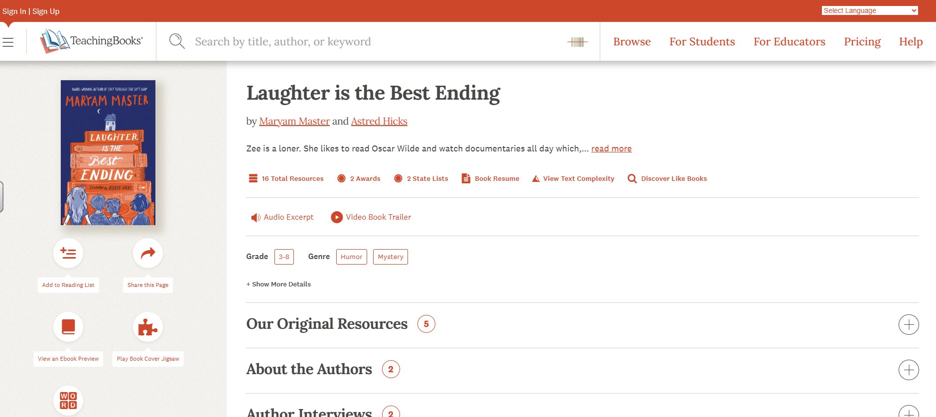 Teaching Books - Laughter is the Best Ending by Maryam Master